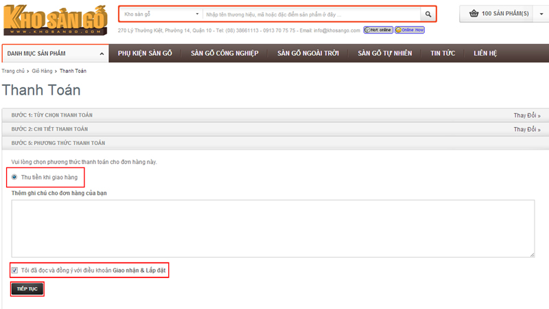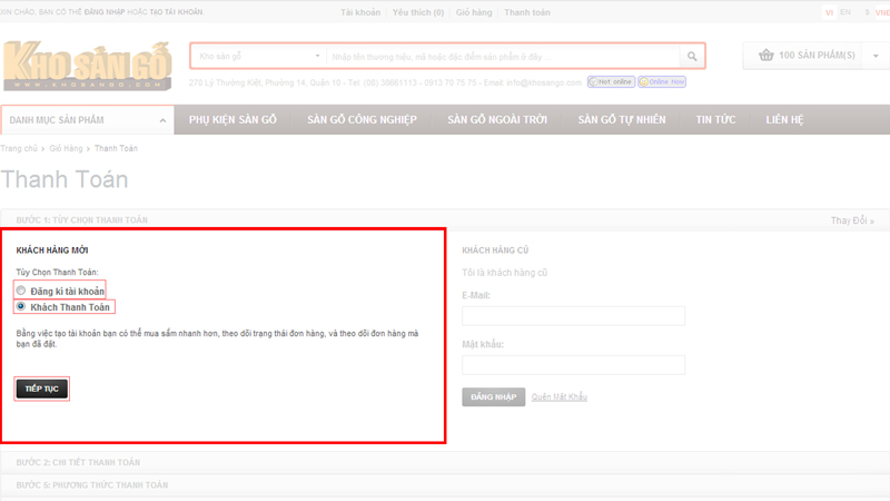 Bước 3: Xem giỏ hàng, thay đổi sản phẩm trong giỏ hàng và bắt đầu thanh toán (Bạn chỉ cần thực hiện bước này khi bấm vào nút thêm giỏ hàng)