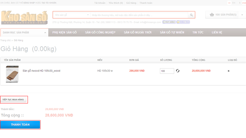 Sau khi chọn mua xong quý khách có thể chọn " Thanh toán" hoặc " Xem giỏ hàng"
