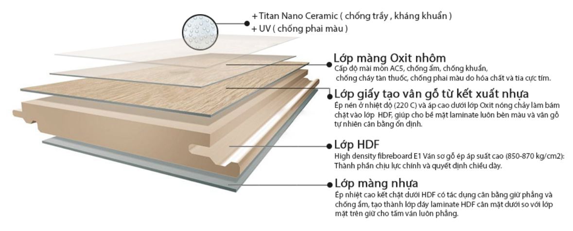 | ✔ Mặt sần bóng mờ độ mài mòn từ AC4 đến AC5 | ✔ Sàn gỗ công nghiệp sản xuất 100% tại đức (C.O &C.Q) |
