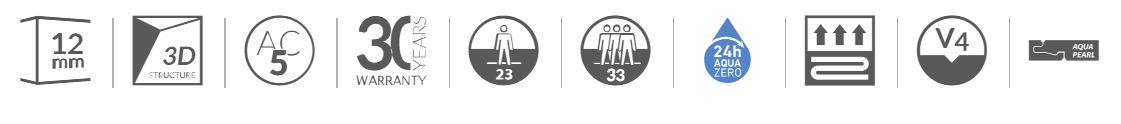 | - Aqua Zero | 12 MM | 1380 x 113 x 12 mm | - Class 33 / AC5 as per EN13329 / HDF E1 / Eco Friendly |