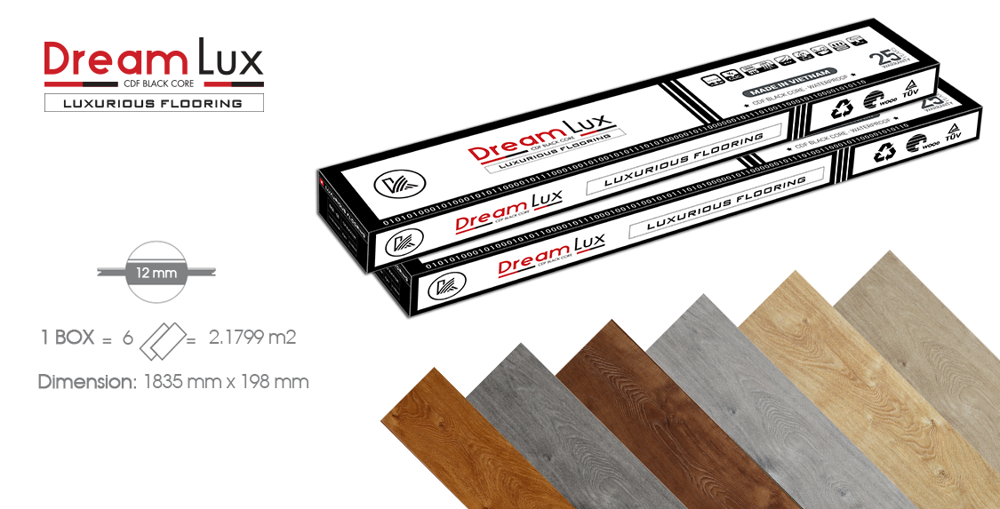 ♦ Sàn gỗ DREAMLUX 12mm tại chuỗi KHO SÀN GỖ, cam kết chuẩn sàn sản xuất tại Việt Nam.
