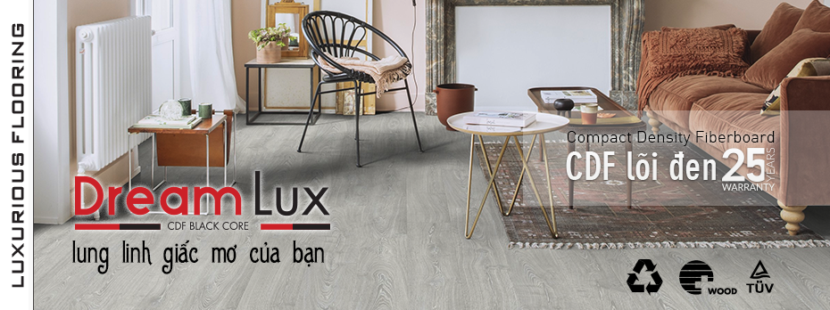 ♦ Sàn gỗ DREAMLUX 12mm, dòng sàn gỗ Luxurious Dreams. Sàn gỗ cốt CDF dày 12mm nhập khẩu Malaysia, loại cốt cứng chịu nước tốt nhất và là vật liệu xanh bảo vệ sức khoẻ tốt, Vậy Cốt CDF là gì?