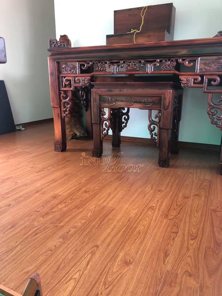 Sàn gỗ INDO-OR ID8079 thiết kế vân gỗ Walnut tự nhiên, Bề mặt cán ép Oxit nhôm chống trầy xước tốt, cốt gỗ HDF lõi xanh nhập khẩu Indonesia, chống ẩm
