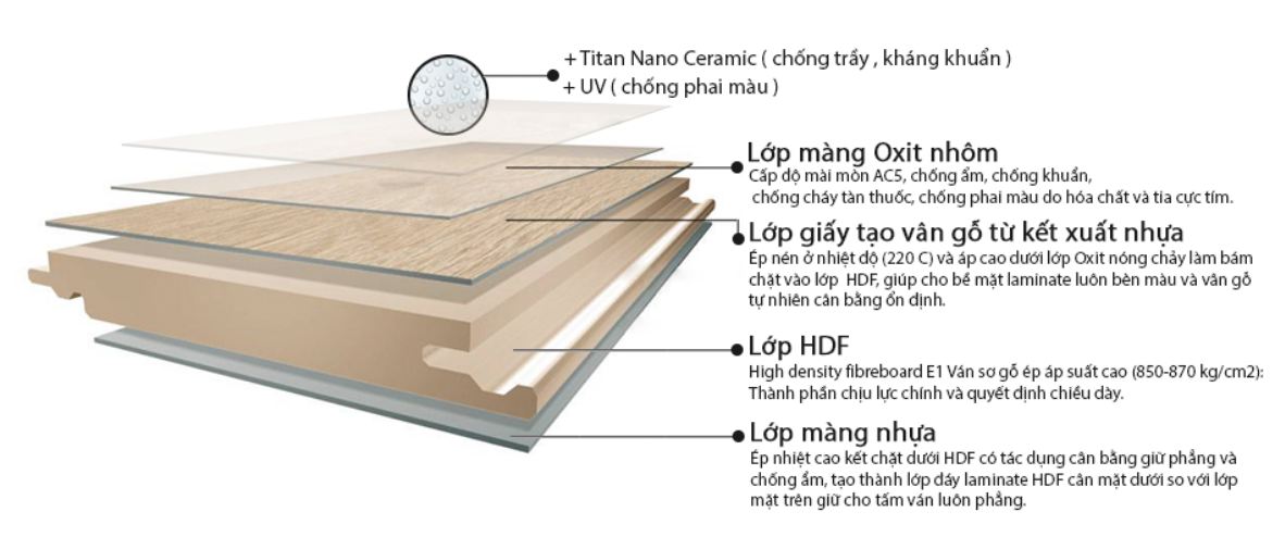 | ✔ Mặt sần bóng mờ độ mài mòn từ AC4 đến AC5 | ✔ Công nghệ sản xuất 100% Hàn Quốc |