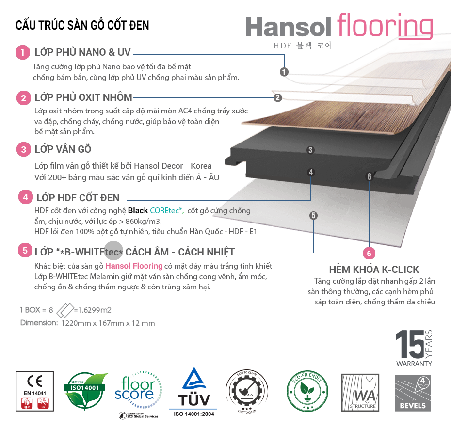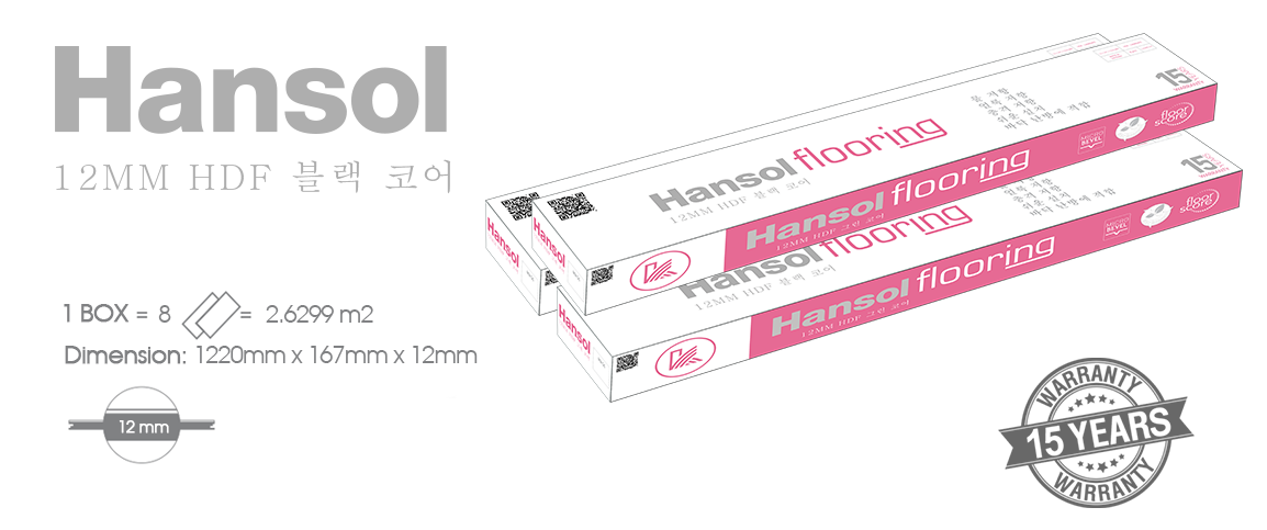 Sàn gỗ HANSOL 12mm, HDF cốt đen, Phân phối độc quyền tại chuỗi hệ thống Kho Sàn Gỗ. Com