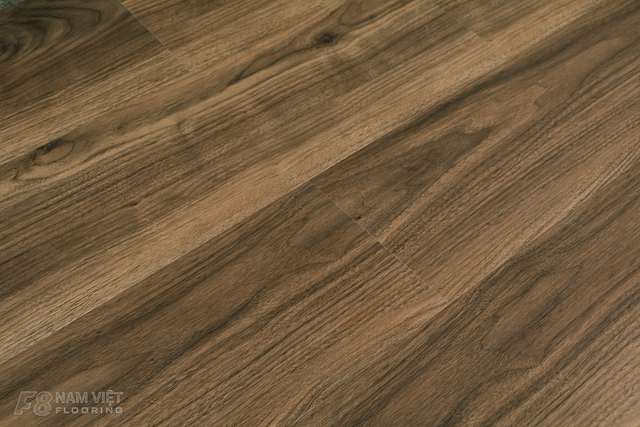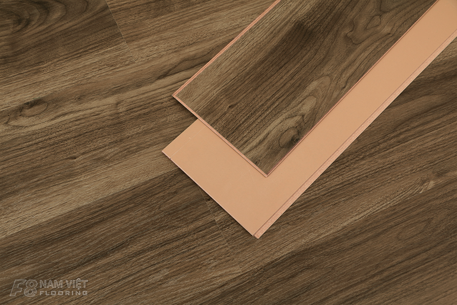 Sàn gỗ công nghiệp Nam Việt F8 được cấu tạo với 5 lớp cơ bản và cạnh hèm khóa CLICK-LOCK(1) sau: Lớp thứ nhất là lớp phủ UV ngăn sự tiếp xúc trực tiếp từ ánh sáng, và giữ màu sản phẩm bền lâu. Lớp thứ 2 là lớp Oxit nhôm chống mài mòn, chống trầy xước dưới các tác dụng trong sinh hoạt đời sống. Lớp thứ 3 là lớp giấy film (vân gỗ) được xuất xứ 100% từ Châu Âu, được lấy ý tưởng từ kiểu vân của cây gỗ tự nhiên. Lớp thứ 4 là lớp HDF(2) cốt gỗ chắc chắn tạo độ bền, chịu lực tốt, thành phần bột gỗ được ép đùn với công nghệ chuẩn. Và lớp cuối cùng là lớp đế có tác dụng chống ẩm, chống ồn, sự bốc hơi ẩm từ mặt sàn lên.