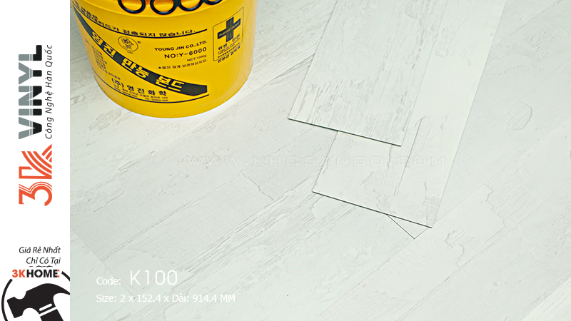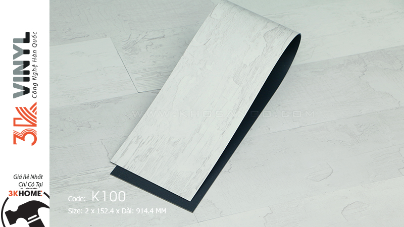 Với cấu tạo nhựa PVC chuyên dụng, bề mặt vân gỗ tự nhiên đa dạng màu sắc mang đến cho Sàn nhựa 3K Vinyl K100 rất nhiều ưu điểm: chống trầy, chống nước, không cong vênh co ngót, mối mọt, lắp đặt đơn giản thậm chí có thể tự lắp đặt không cần dụng cụ thi công nhiều và phụ kiện: len nẹp.