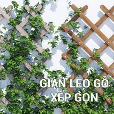Giàn gỗ xếp gọn được sử dụng nguyên liệu từ gỗ tràm bông vàng (keo), loại gỗ tự nhiên thông dụng. Với cấu tạo nhỏ gọn các thanh gỗ tự nhiên Tràm Bông Vàng được xếp lớp theo hình thoi, khi bung ra dạng caro lạ mắt, cố định bởi ốc vít, có thể co giãn và thu gọn lại được, với kiểu dáng và kích thước tiện lợi trong việc xếp gọn, tháo lắp dễ dàng, di chuyển vị trí thoải mái, khi bung sản phẩm có hình caro tạo vẻ đẹp độc đáo cho khung viên xanh của gia đình, bạn có thể trang trí thêm cây leo, hoa rũ xuống tạo nét tự nhiên, không gian xanh, rất thuận tiện cho những không gian trang trí nhỏ hẹp như ban công, lan can, sân thượng.