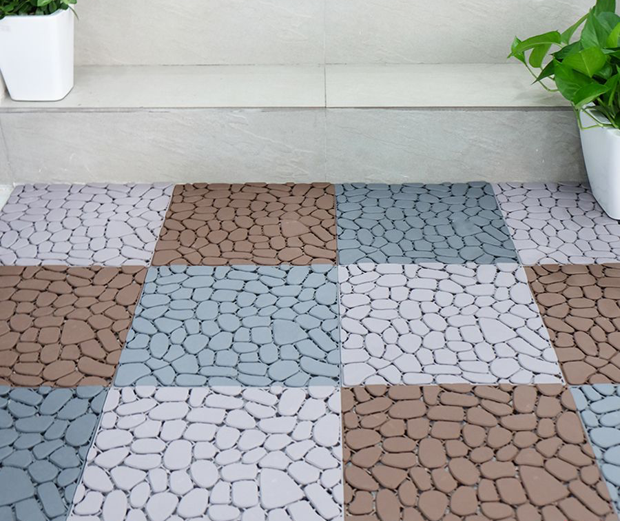 Vỉ Nhựa Lót Sàn SN - Sim làm từ nhựa PVC và bề mặt có hình dạng của những viên sỏi nhò xinh quy cách 300 x 300 mm dày 14 mm, màu xám