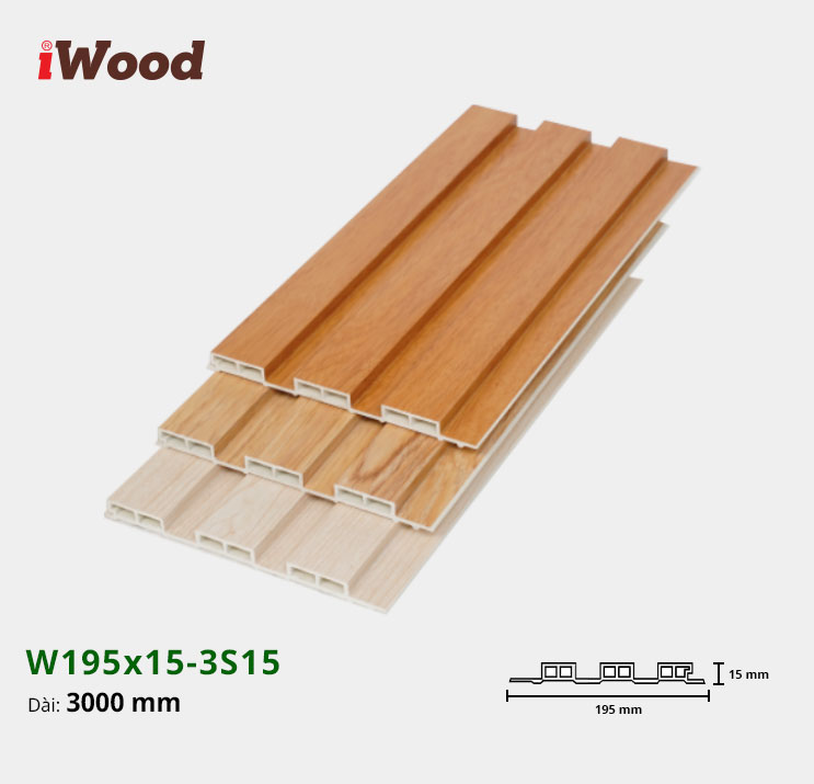 | Qui cách | (L x W x H): 3000mm x 195mm x 15mm |